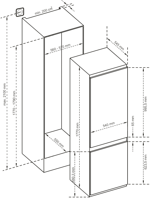 ARE 1215 NF 01 Réfrigérateur encastrable Total No Frost Informations Générales Modèle : Encastrable Type de froid congélateur : Total NoFrost Volume : 233 L Classe énergétique : A + Couleur : Blanc ㅤ Schéma technique Détails Voir les détails